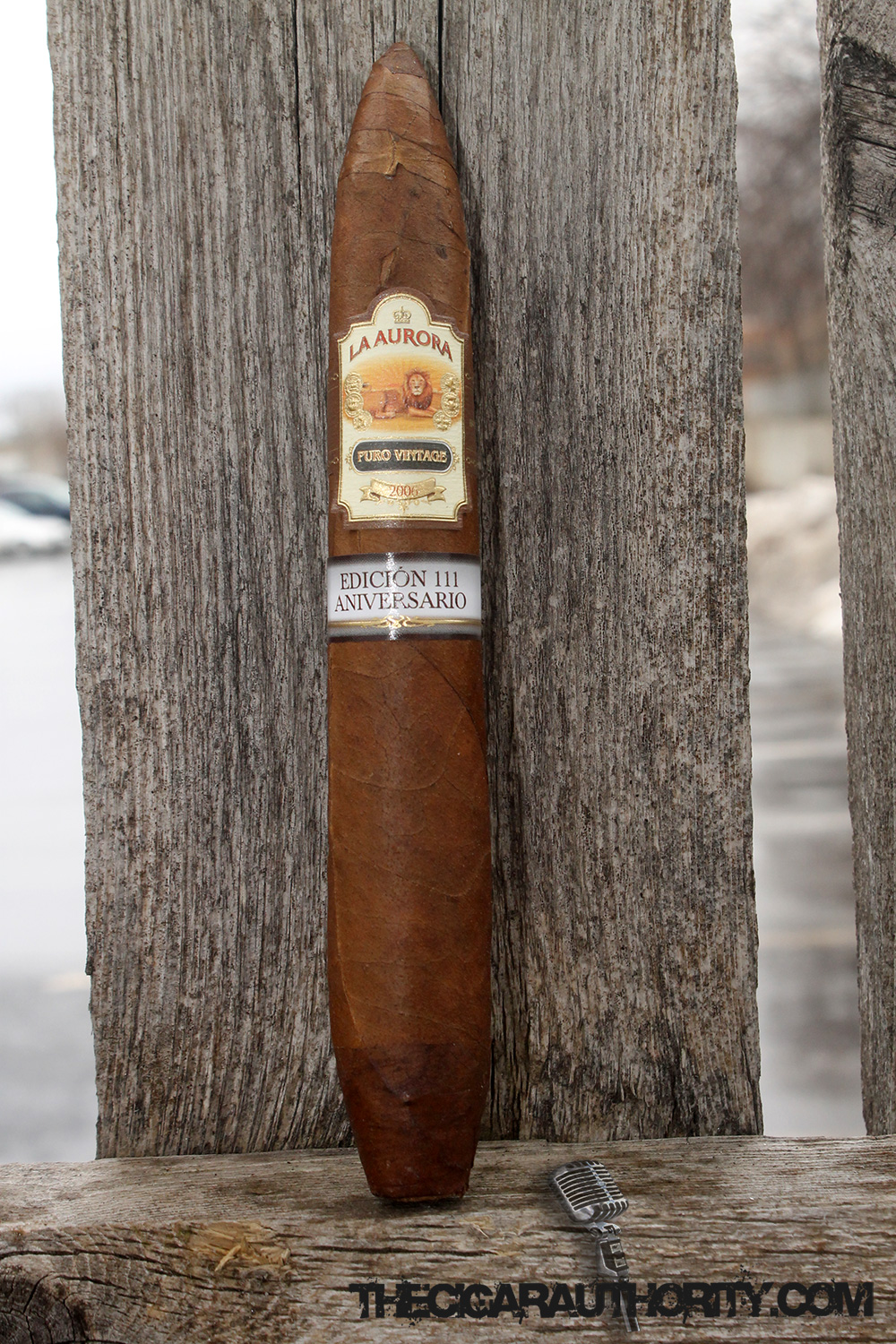 The Look: The Puro Vintage 2006 appears to be darker than years past at first glance. The exceptionally rolled Salomon cigar features two bands, the first being the La Aurora Puro Vintage 2006 band which is my favorite of the La Aurora portfolio, the secondary band denotes it is their 111th Anniversary which seems to be more of an afterthought as the coloring and quality is less than the primary. The foot of the Salomon is wrapped with a separate piece of tobacco that is a different color that the rest of the cigar which does detract from the beauty. In the hand the cigar is firm with no soft spots.