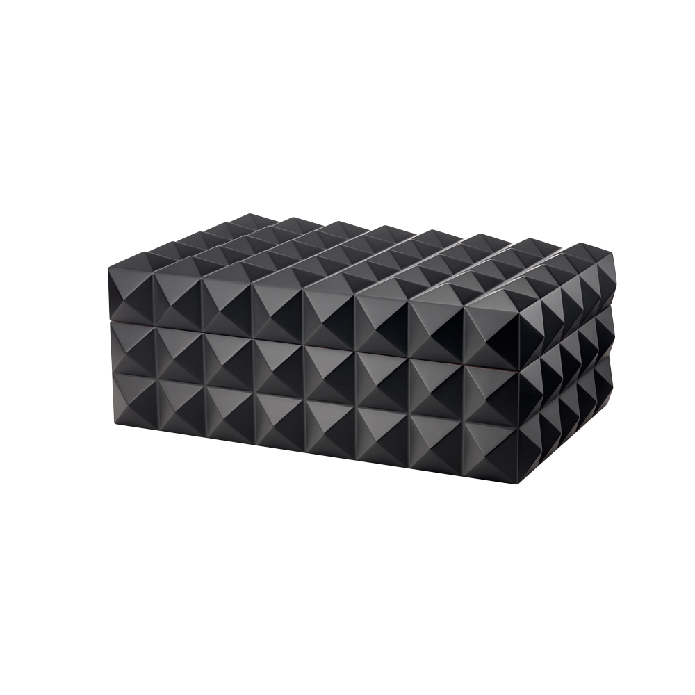 Master craftsman, Daniel Marshall, rated the number one humidor creator by Cigar Aficionado magazine, has produced luxury humidors from his state-of-the-art workshop in southern California since 1982. “We constructed the exterior from Honduran mahogany and lined the interior with untreated Spanish cedar,” says president Daniel Marshall while speaking of the Quasar, “which works in concert with our unique construction to enable fine cigars to become ‘alive’. To create the multi-dimensional contours of the exterior, we had to manufacture a custom carbide cutter to produce the four-sided pyramid shapes. We then finished the exterior with a matte black lacquer. Careful and thoughtful attention goes into each step in our process. From start to finish, each humidor we construct will have passed 175 individual and delicate procedures.”