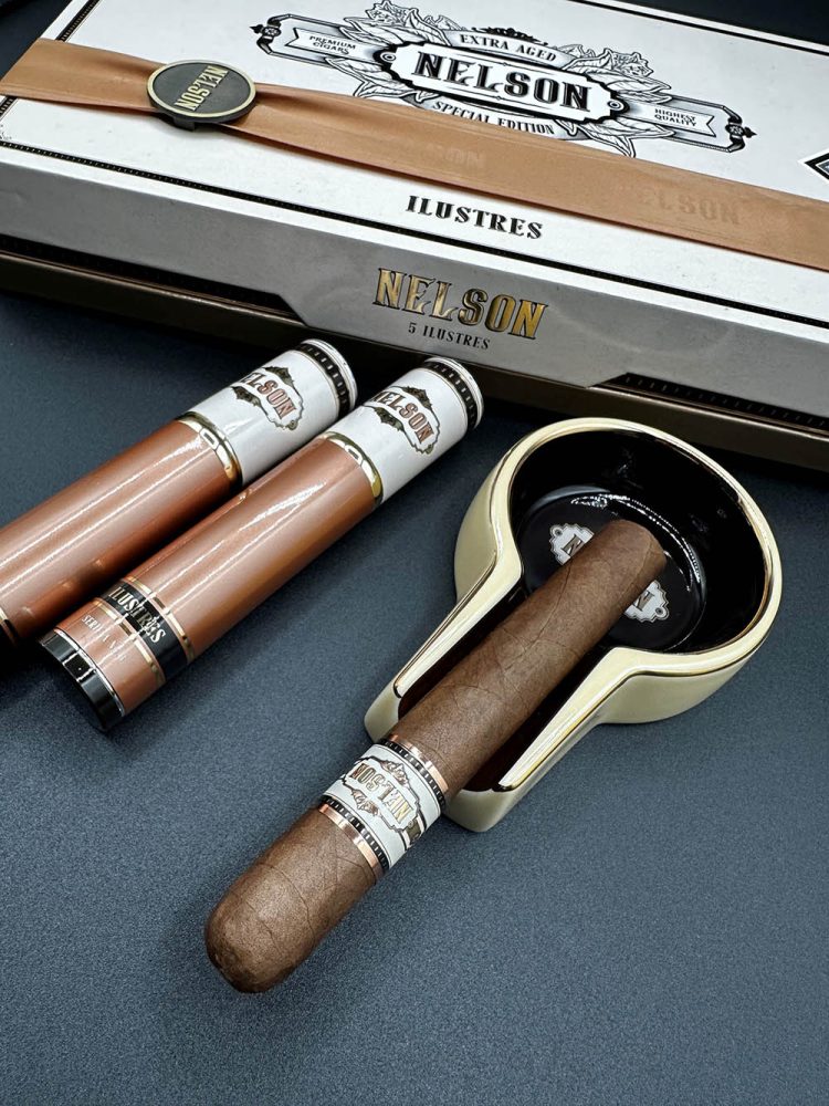 The Nelson will be available exclusively as a 6 × 54 vitola presented in commemorative packages that include five, four year aged cigars and a custom-designed ashtray created by Alfonso himself. Each cigar comes housed in protective, cosmetic-grade aluminum tubes to preserve its unmatched quality.