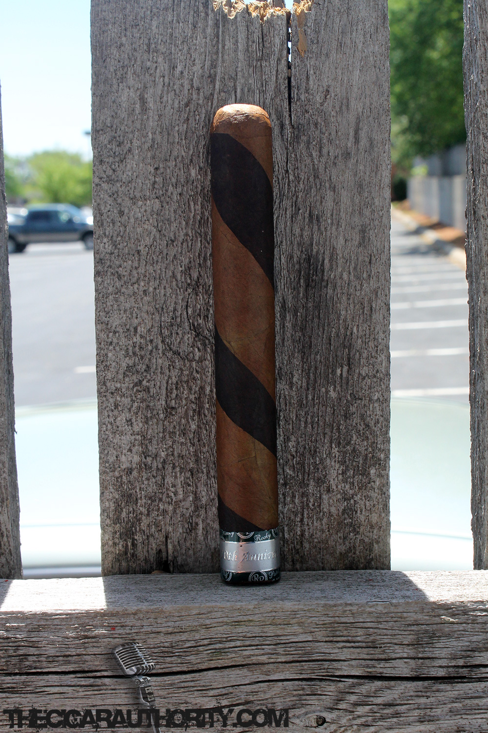 The Look: For me barber pole cigars have always been a gimmick, with more of them being a miss than a hit. In an essence, it creates a cigar that is bi-polar in nature. Upon looking at the cigar, the color combination of the two wrappers is more inviting then most other barber poles, as the contrast looks different with a more robusto Corojo wrapper against the maduro. In fact it reminds me of a stick-ball bat from the old neighborhood. The band utilizes colors of forrest green and a silver background with silver text that is embossed. While the band is at the foot, I moved it up to a tradition spot for the smoking photograph.